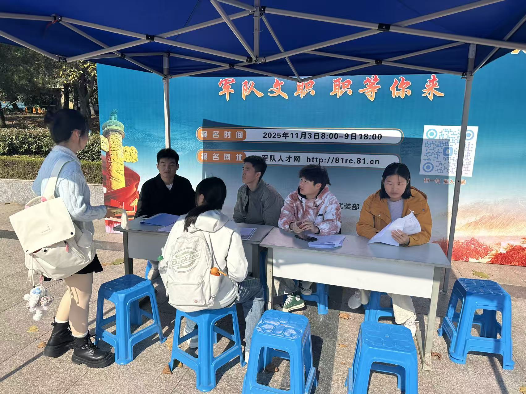 为了引导青年学子投身国防建设,11月5日,我校党委武装部在青春广场开展2026年军队文职招考宣讲活动。
