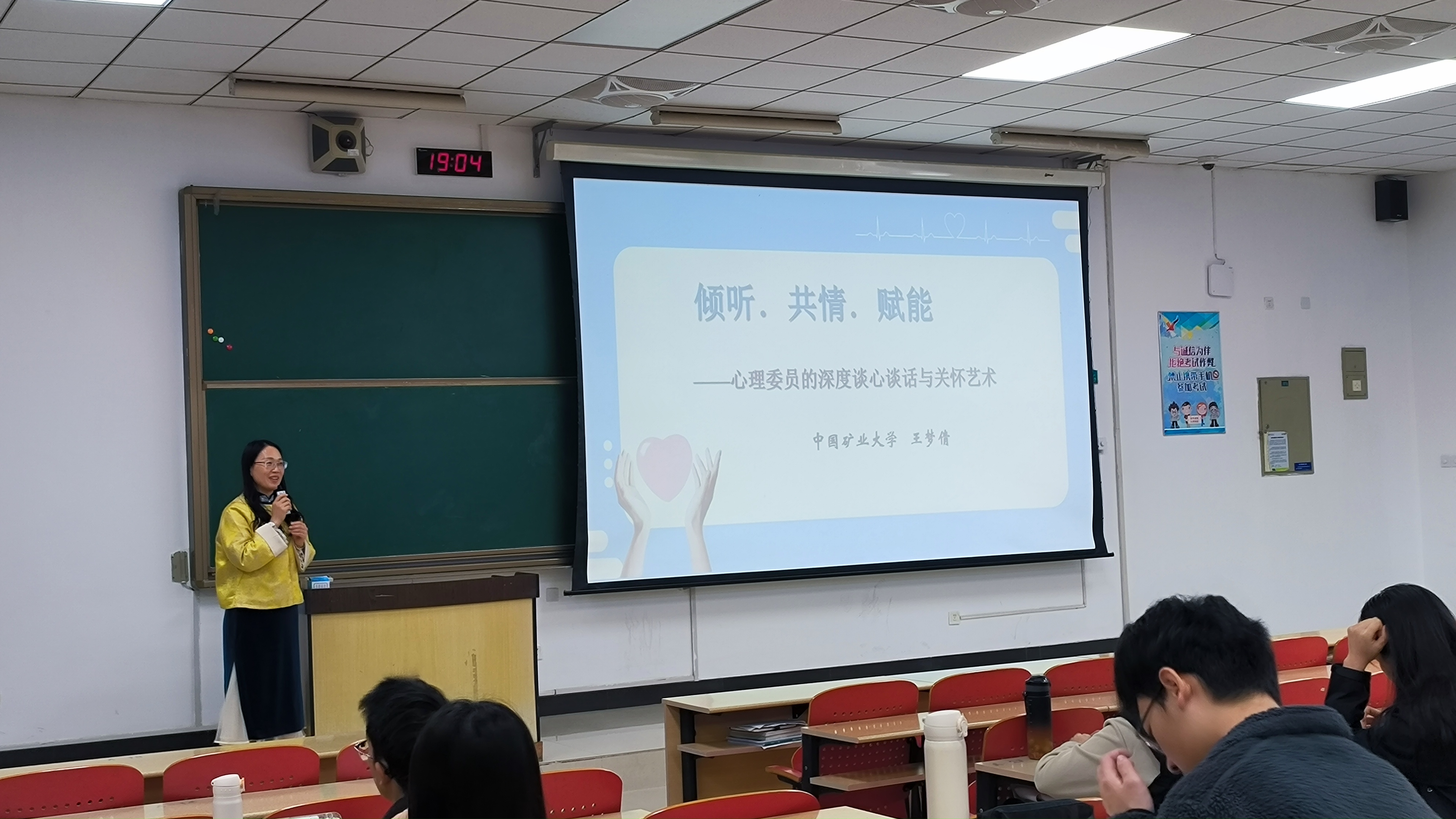 为进一步普及心理健康知识,提高心理委员服务广大学生健康成长的工作能力,学校大学生心理健康教育中心于10-11月集中组织开展2025-2026学年新上岗心理委员专题培训工作。徐州市东方人民医院主任医师赵后锋、学校心理健康教育中心专兼职教师共开展5个专题10场次培训辅导。来自各学院的350余名新上岗心理委员分两个场地同时参加系列培训活动。