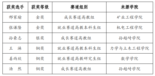 我校省赛获奖选手名单