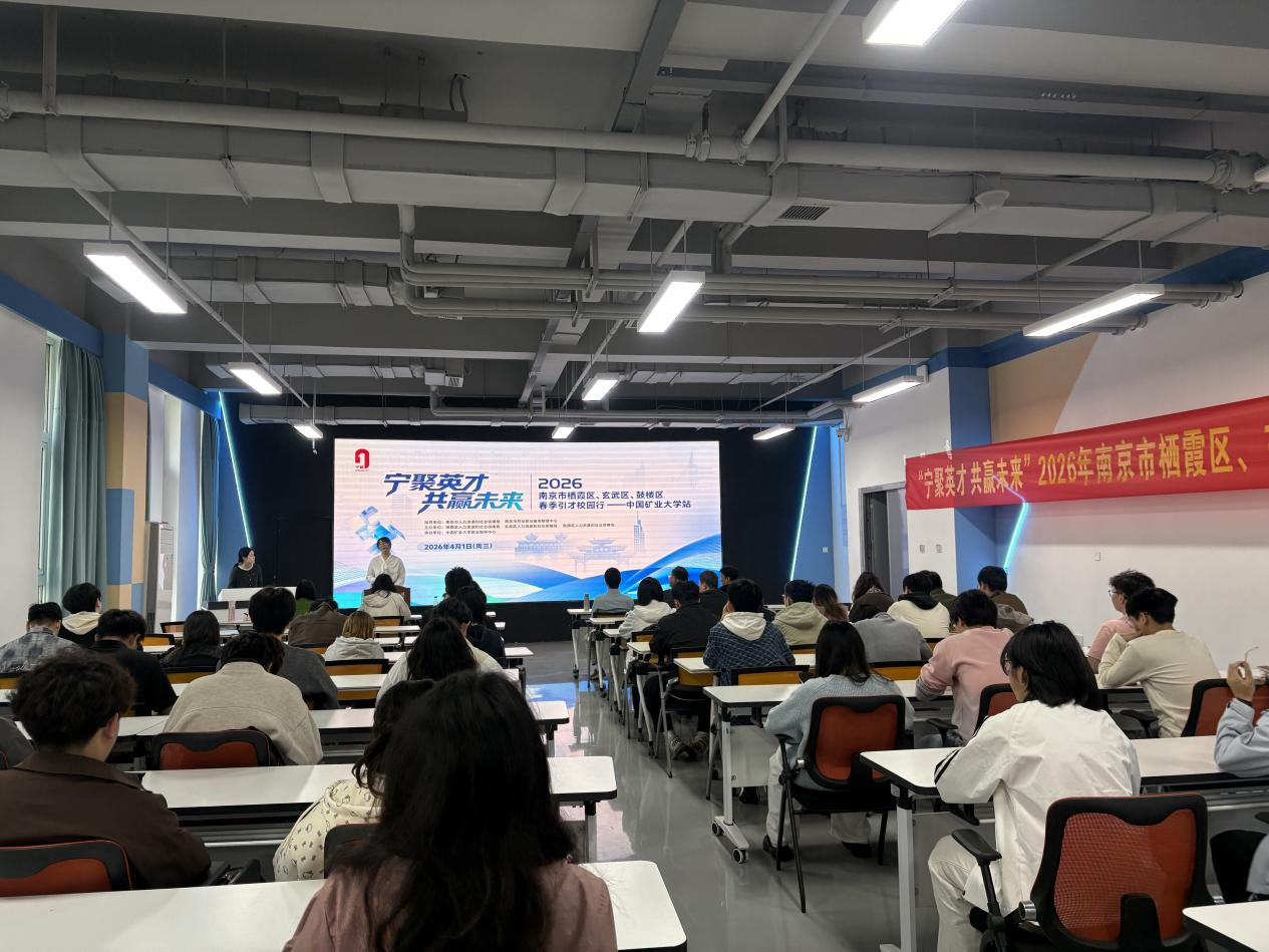 同期,南京市栖霞区、玄武区、鼓楼区2026年“宁聚英才 共赢未来”春季引才校园宣介会在力行楼A107举行,部分2026届和2027届毕业生参加了宣介会。与会人员共同观看了南京市栖霞区、鼓楼区、玄武区宣传片,栖霞区人社局工作人员介绍了南京市的市情市貌、创业政策及人才招引政策,并向参会学生推介第十三届“赢在南京”青年大学生创业大赛,诚挚邀请广大矿大学子到南京逐梦发展,实现以赛促创、以赛聚才。