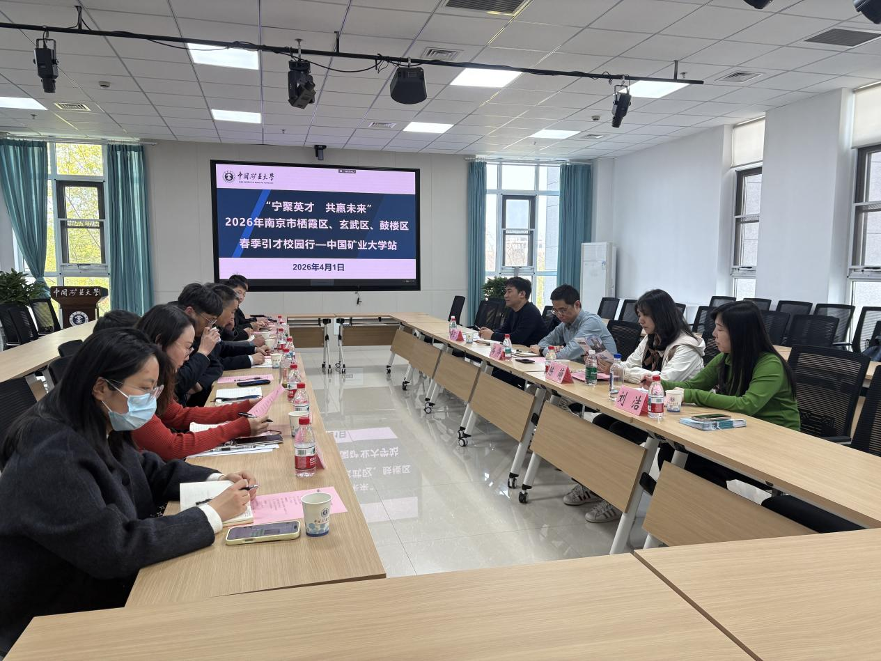 4月1日下午,南京市栖霞区人社局副局长梅华、玄武区人社局副局长陈萌、鼓楼区人社局副局长蒋卫飞一行来校开展校地对接活动。学校在力行楼B217会议室举行校地交流座谈会。中国矿业大学学生工作处副处长兼就业指导中心主任罗育超、江苏师范大学学工处副处长丁力、江苏建筑职业技术学院招生就业处副处长周磊、徐州医科大学就业创业指导中心老师景美玲,以及学校相关工作人员参加会议。
