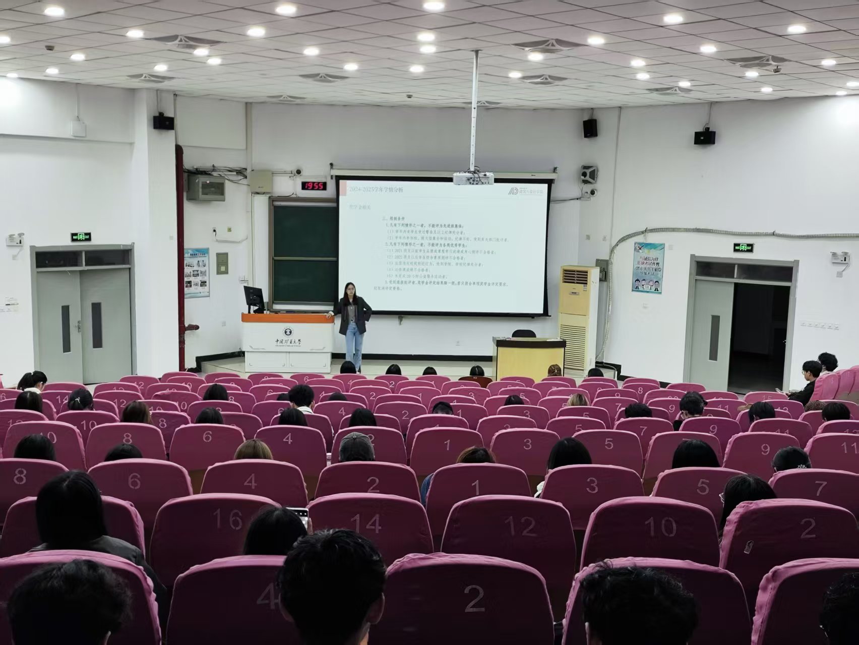2023级和2024级年级大会上,辅导员李艺林老师对2024-2025学年的学情进行深入分析,根据不同年级的阶段特点和成长需求,提醒同学们根据自身情况明晰未来发展规划,提前布局升学、就业关键节点。她叮嘱大二同学要“深耕专业,拓展能力”,学好核心课程打好专业基础,积极参与学科竞赛和校园活动以拓展自我;大三学生要“明确路径,精准发力”,根据自身实际,明确未来发展方向。