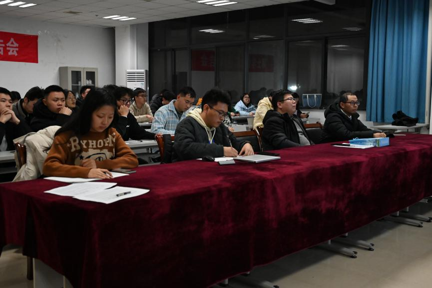 陈玉国对两位同学的精彩分享表示感谢,指出研究生的科研成长离不开扎实的基础、丰富的实践和坚韧的心态。希望同学们以两位优秀学长为标杆,在专业学习上主动钻研,在科研实践中主动担当,在攻坚克难中积累经验、锤炼本领。他提醒大家要遵守校纪校规,合理规划时间,适度娱乐,加强体育锻炼。