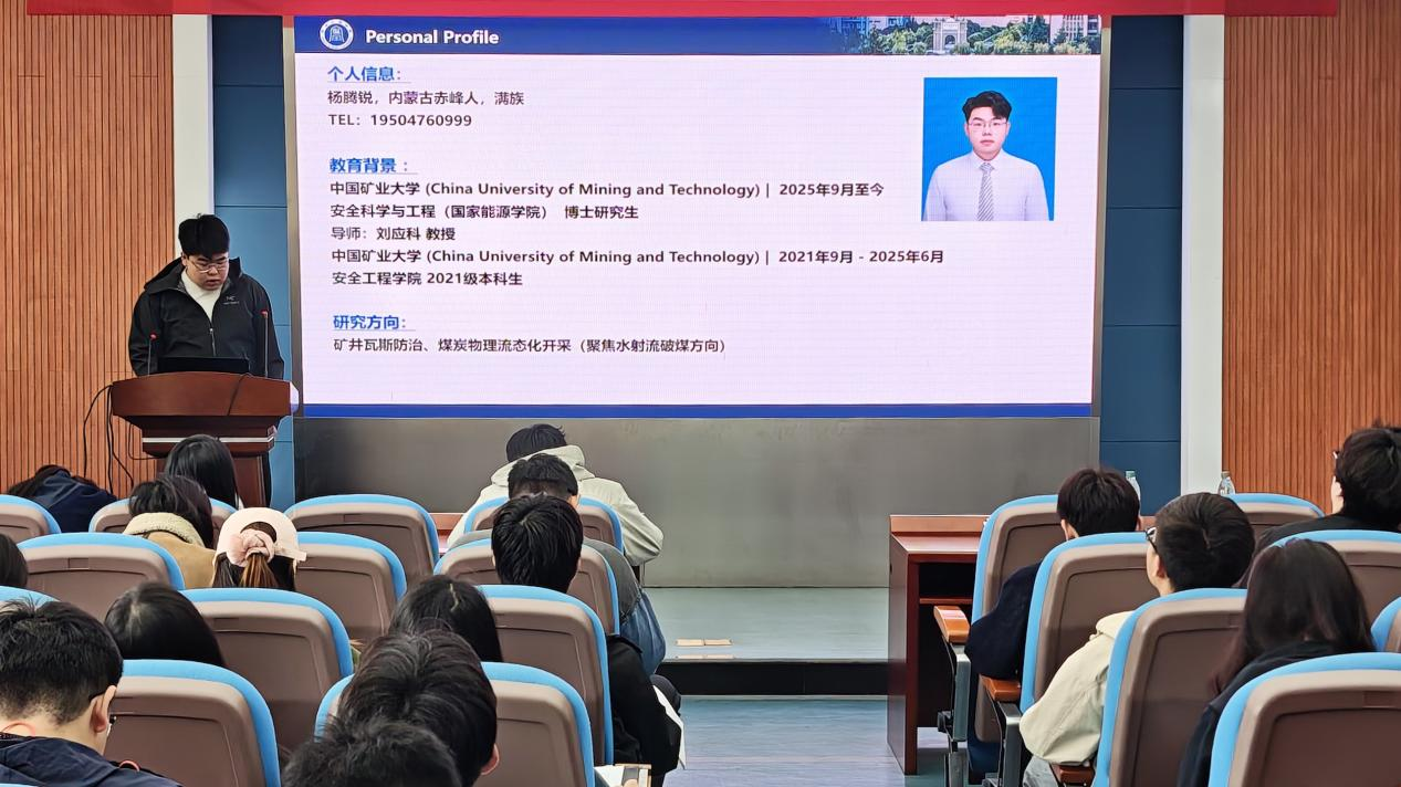 4月10日上午,安全工程学院研究生会于矿业科学中心A200会议室举办第七期青年发展学术论坛。24级直博生张世勇、25级直博生杨腾锐和25级直博生李志仁担任主讲嘉宾,学院部分研究生参与活动。